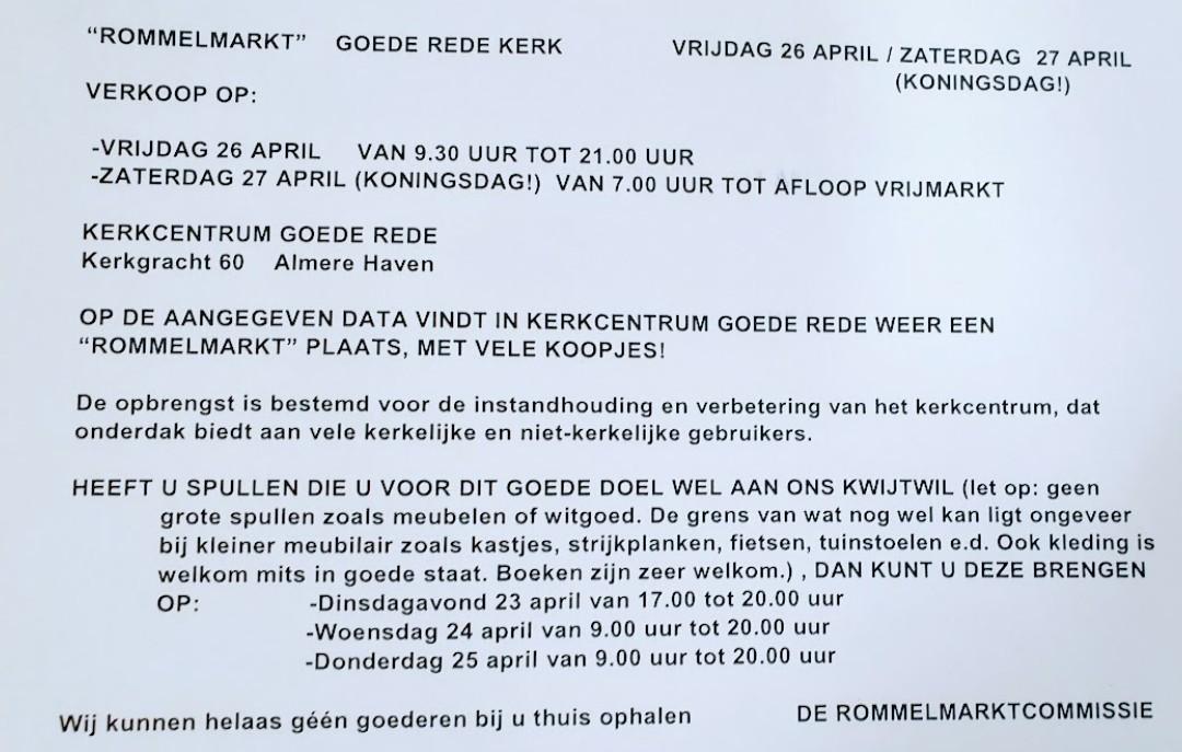 Informatie over komende Rommelmarkt klik hier (eerst naar lees verder)